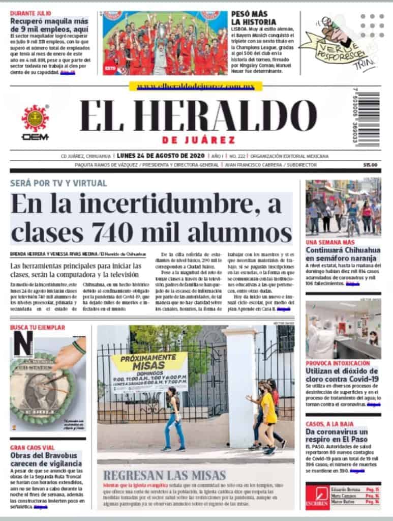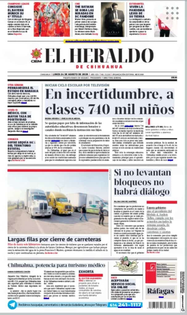 Portadas y Columnas políticas de hoyPrimeras planas locales / 24 de agosto 2020 24 agosto, 20200469FacebookTwitterWhatsAppEmail