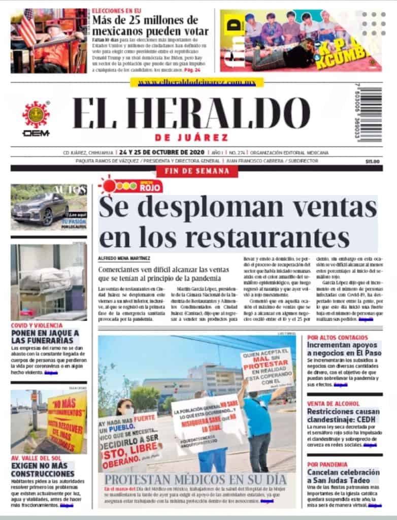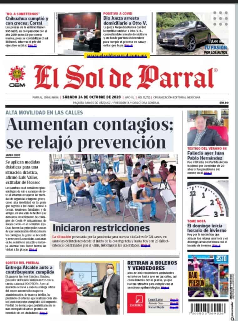 Portadas y Columnas políticas de hoyPrimeras planas locales / 24 de octubre 2020 24 octubre, 20200400FacebookTwitterWhatsAppEmail