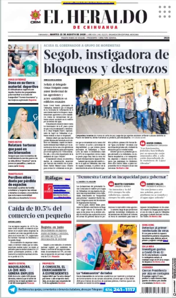 Portadas y Columnas políticas de hoyPrimeras planas locales / 25 de agosto 2020 25 agosto, 20200494FacebookTwitterWhatsAppEmail