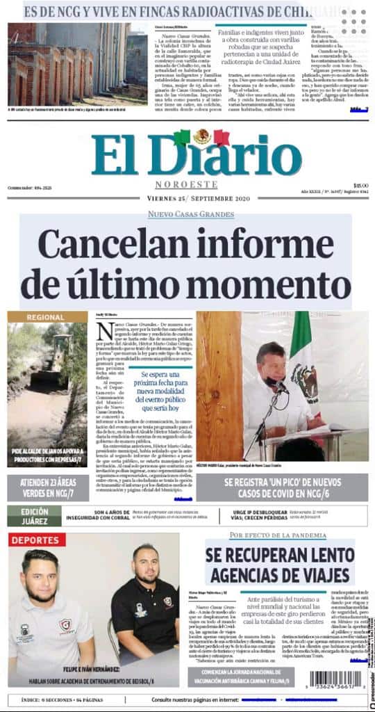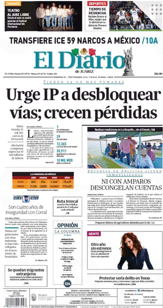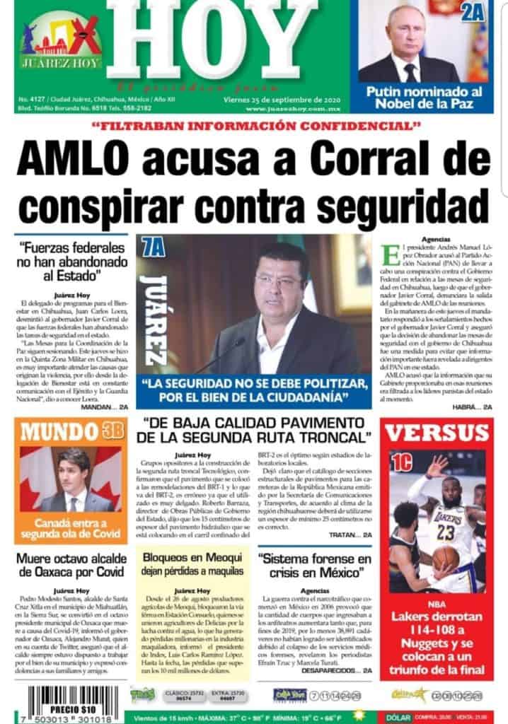 Portadas y Columnas políticas de hoyPrimeras planas locales / 25 de septiembre 2020 25 septiembre, 20200446FacebookTwitterWhatsAppEmail