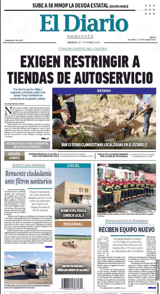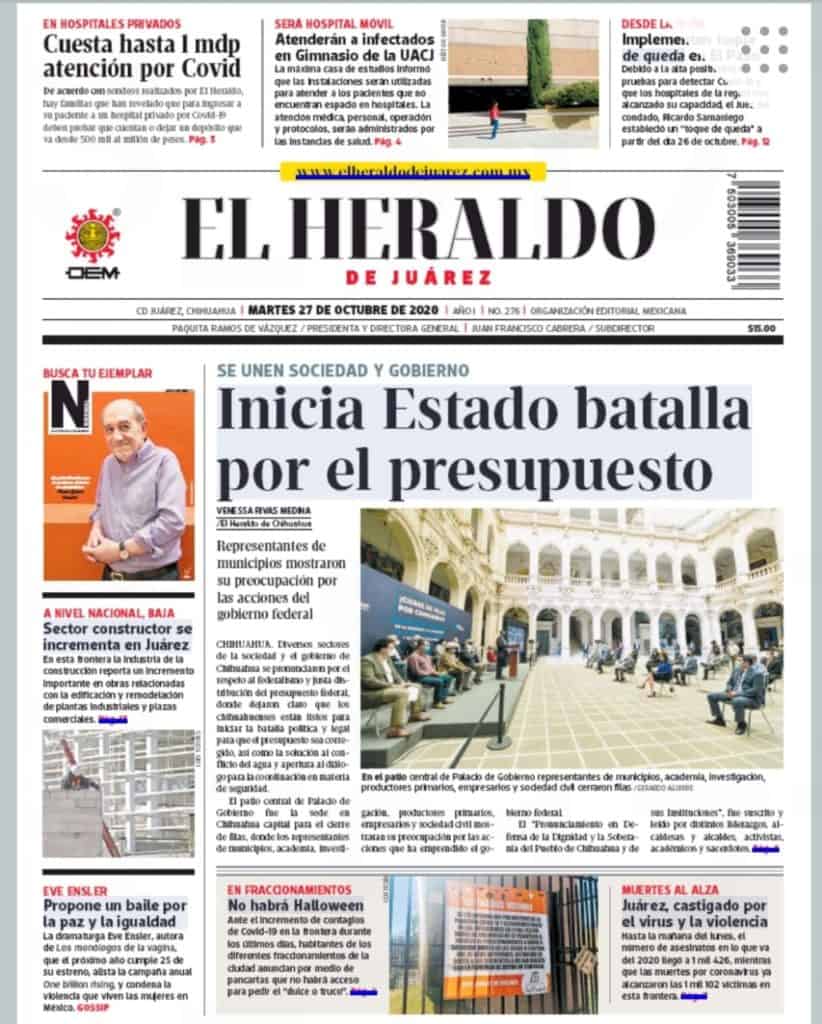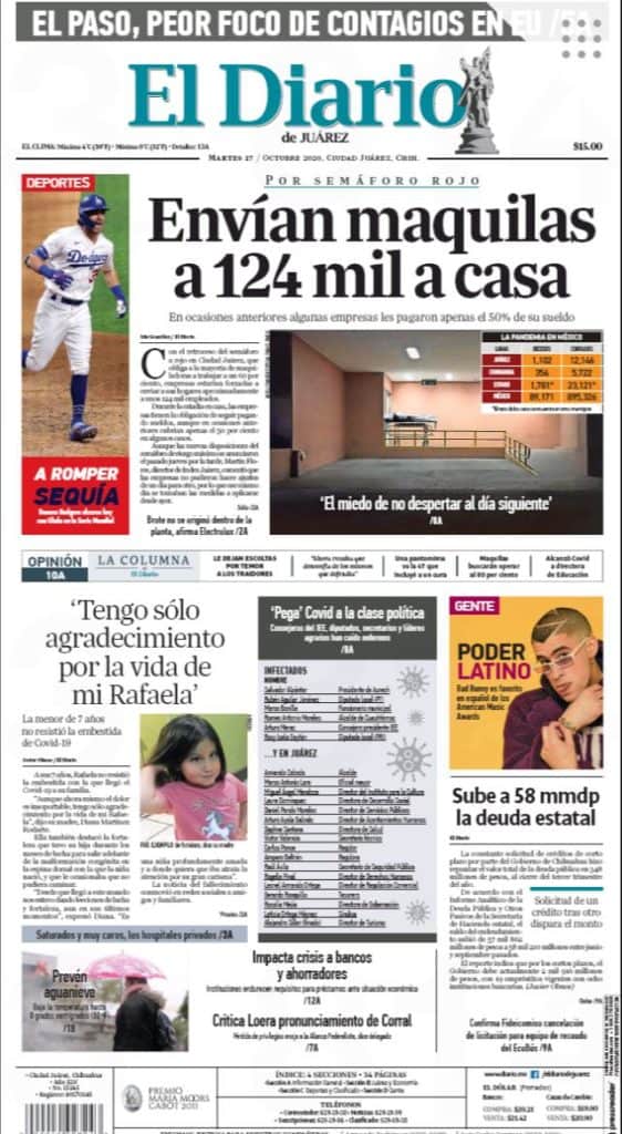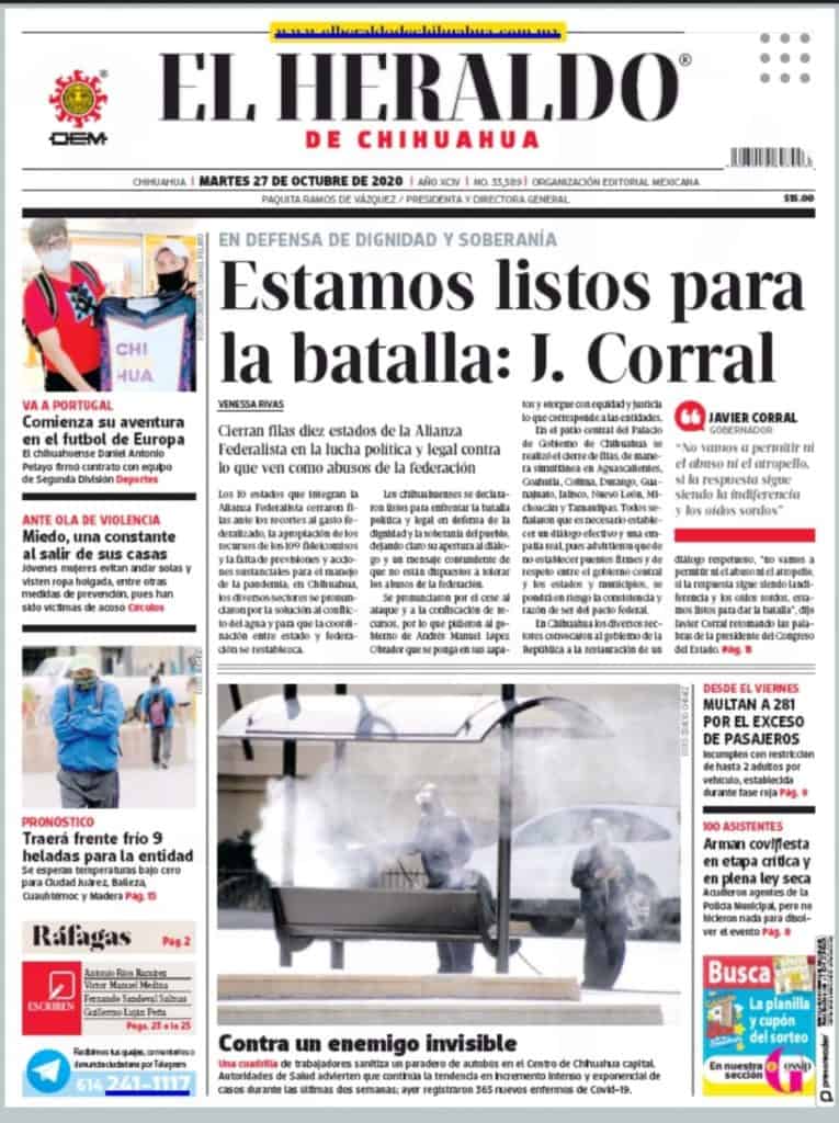 Portadas y Columnas políticas de hoyPrimeras planas locales / 27 de octubre 2020 27 octubre, 20200469FacebookTwitterWhatsAppEmail