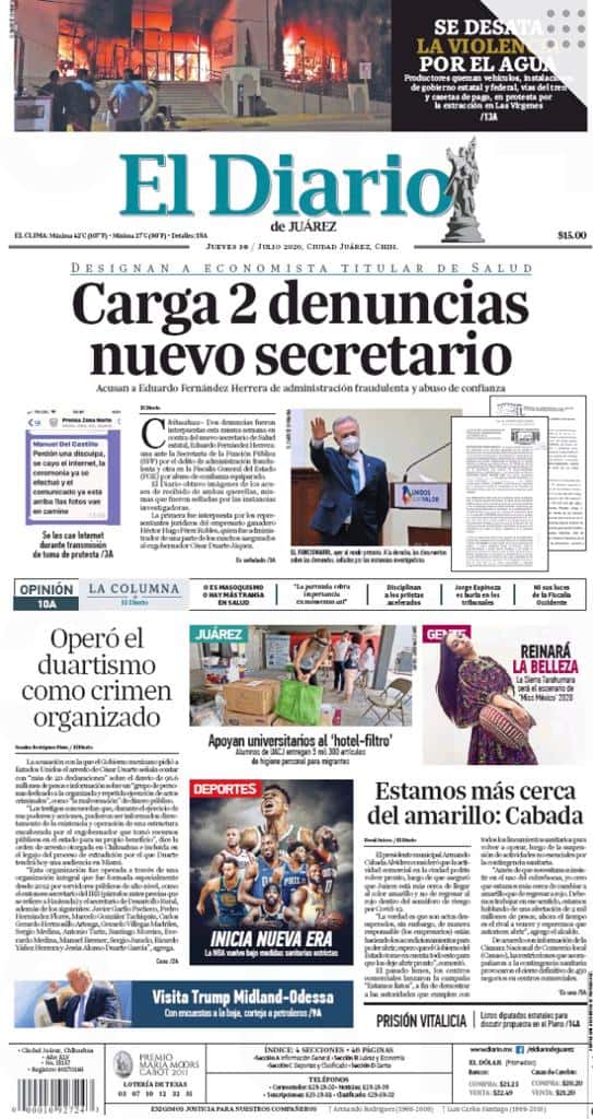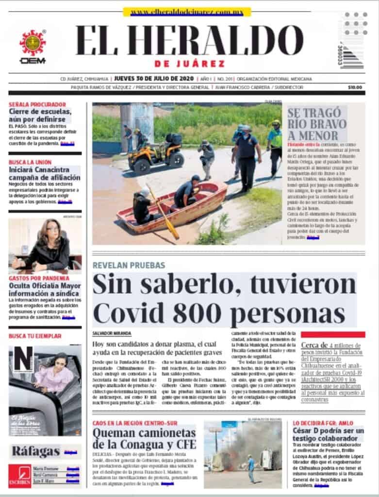Primeras planas locales / 30 de julio 2020