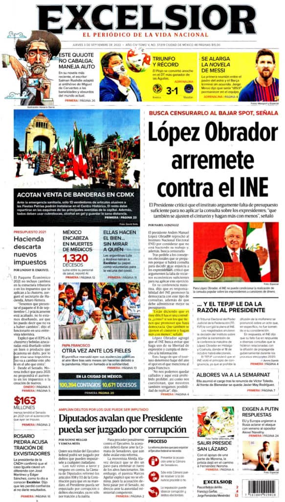 Portadas y Columnas políticas de hoy Primeras planas nacionales / 03 de septiembre 2020 3 septiembre, 2020 0 472 FacebookTwitterWhatsAppEmail