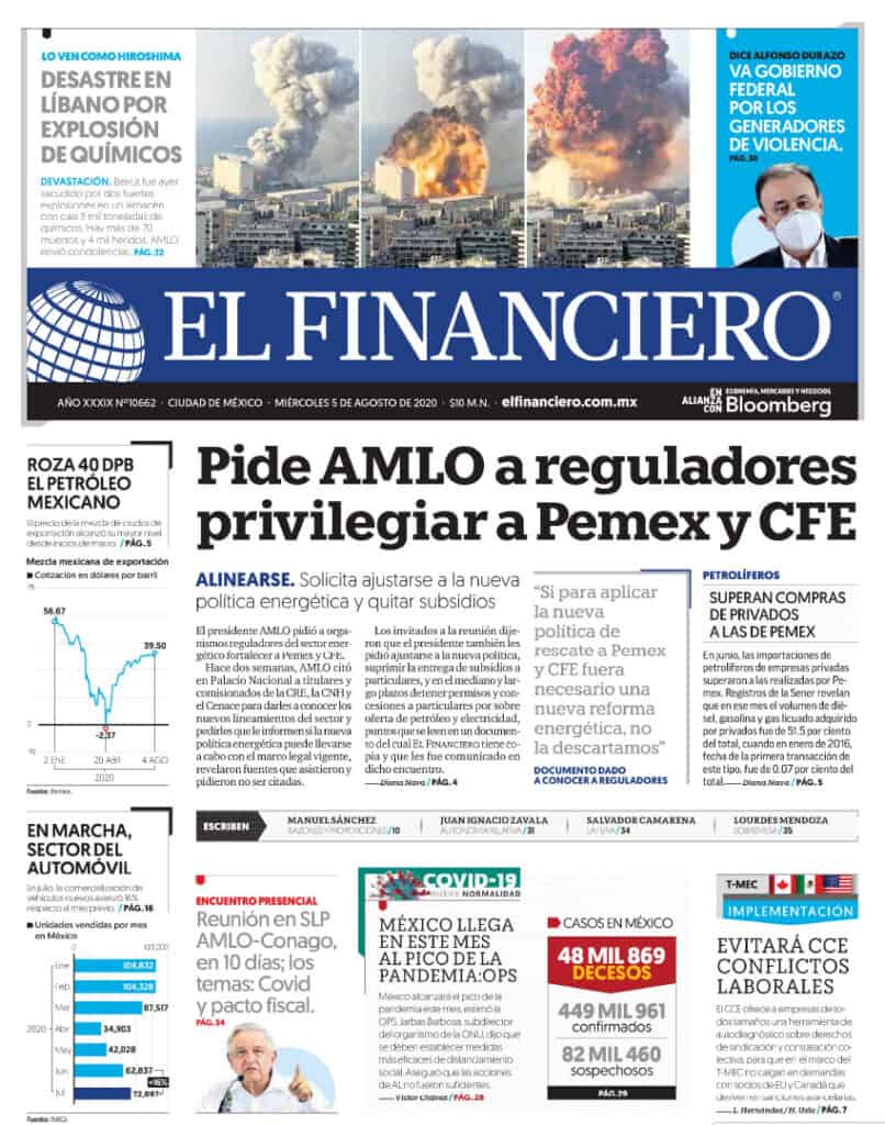 Portadas y Columnas políticas de hoy Primeras planas nacionales / 05 de agosto 2020 5 agosto, 2020 0 500 FacebookTwitterWhatsAppEmail