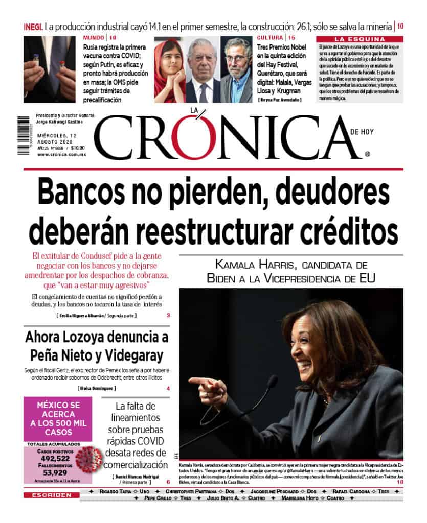 Portadas y Columnas políticas de hoyPrimeras planas nacionales / 12 de agosto 2020 12 agosto, 20200563FacebookTwitterWhatsAppEmail