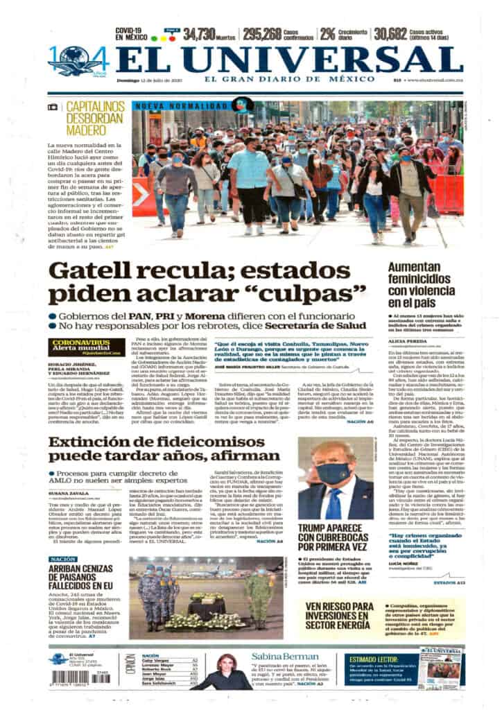 Portadas y Columnas políticas de hoyPrimeras planas nacionales 12 de julio 2020 12 julio, 20200428FacebookTwitterWhatsAppEmail