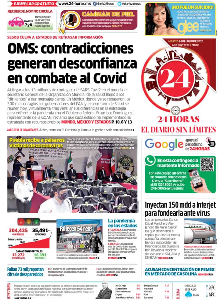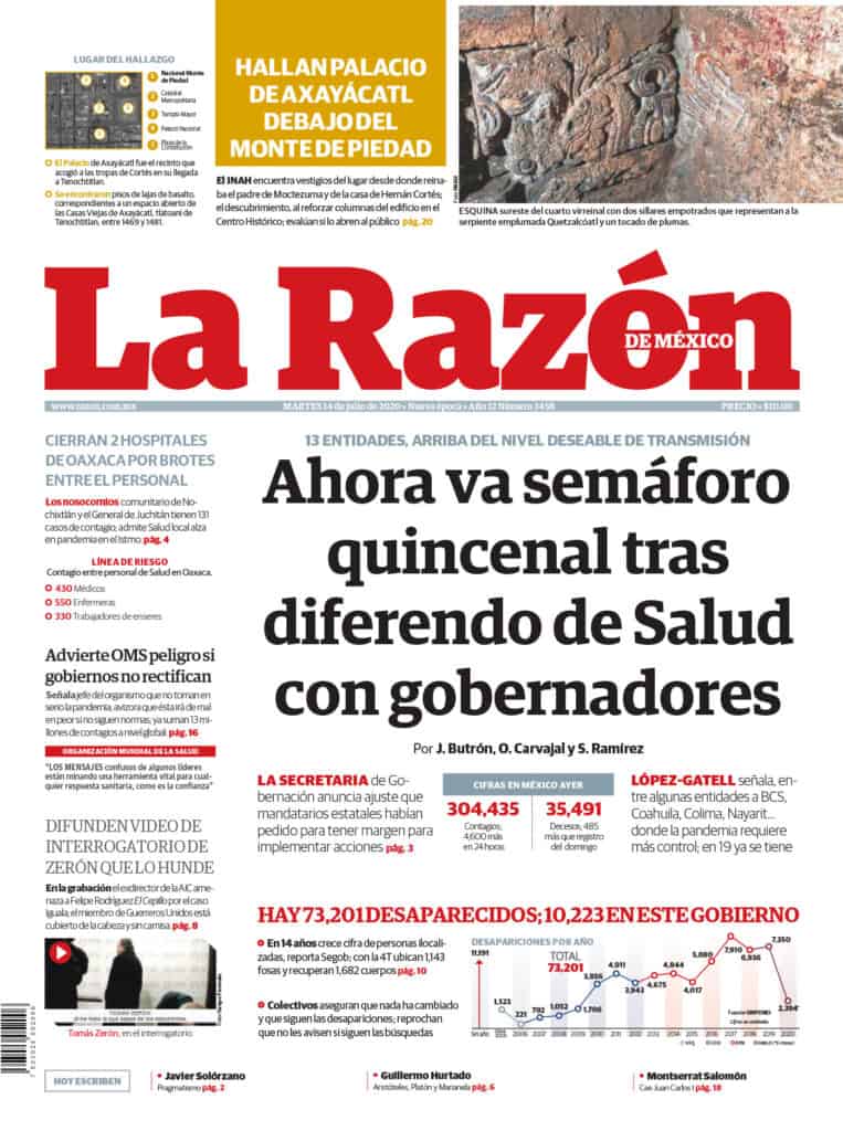 Portadas y Columnas políticas de hoyPrimeras planas nacionales / 14 de julio 2020 14 julio, 20200585FacebookTwitterWhatsAppEmail