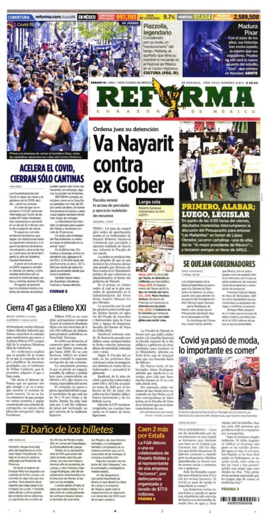 Portadas y Columnas políticas de hoyPrimeras planas nacionales / 14 de noviembre 2020 14 noviembre, 20200532FacebookTwitterWhatsAppEmail