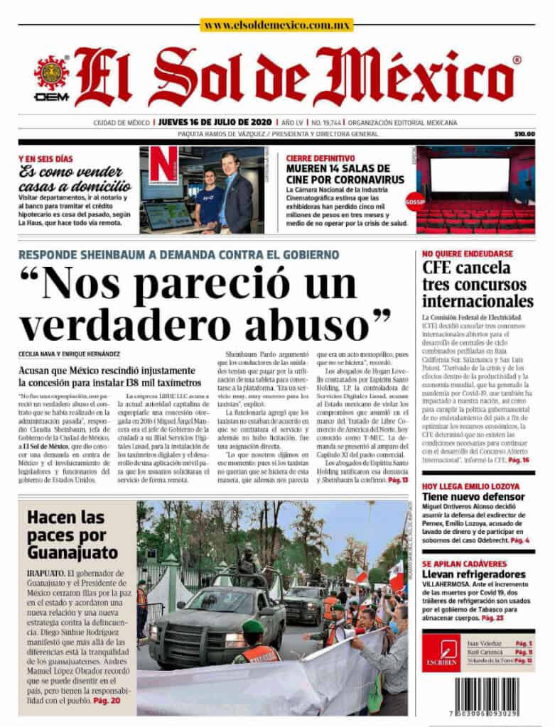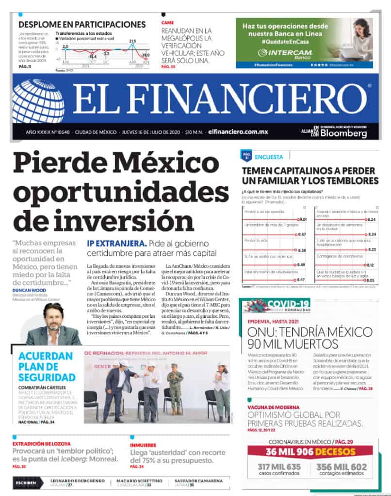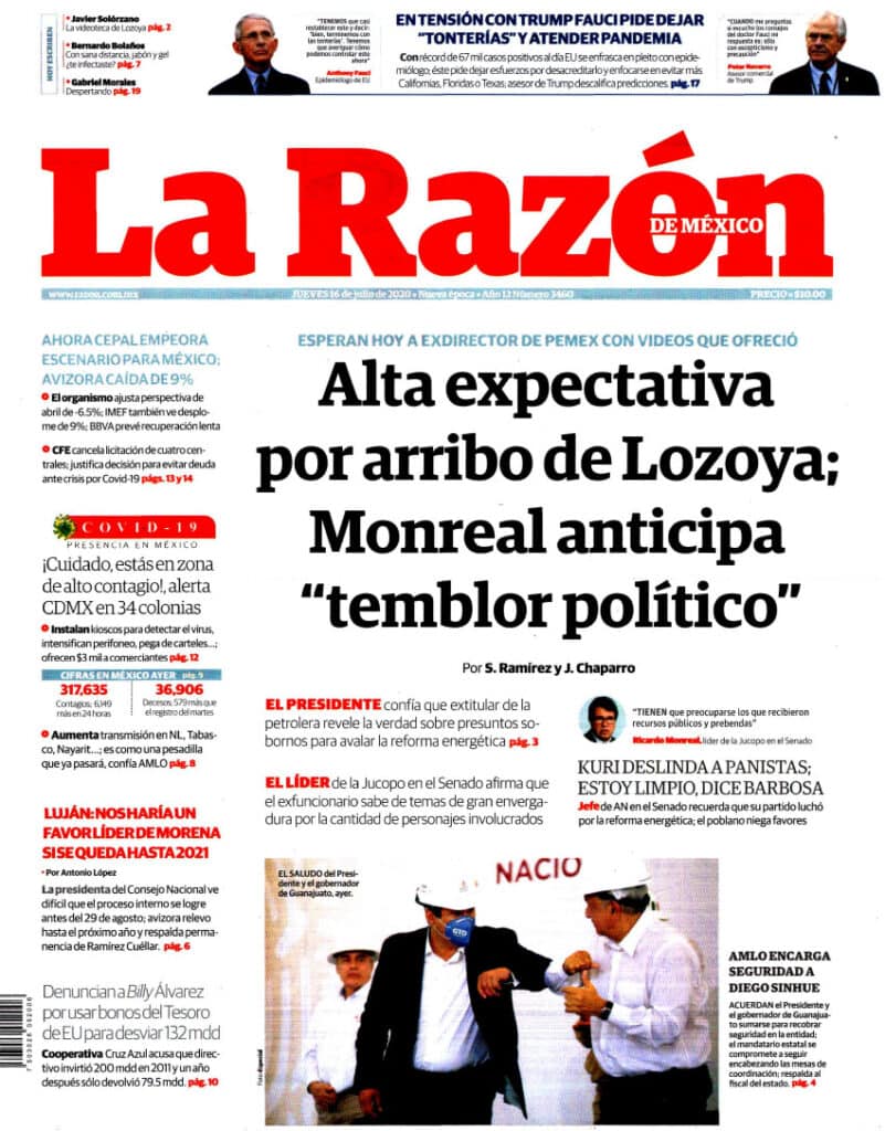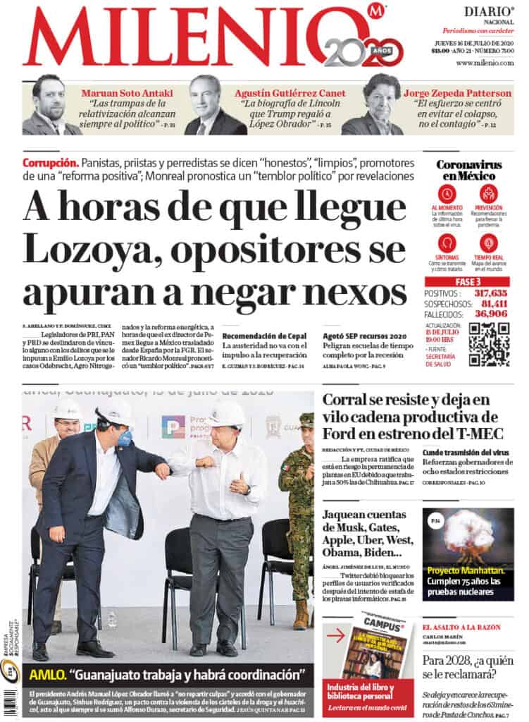 Portadas y Columnas políticas de hoyPrimeras planas nacionales / 16 de julio 2020 16 julio, 20200511FacebookTwitterWhatsAppEmail