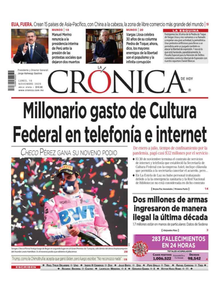 ComunicadosPrimeras planas nacionales / 16 de noviembre 2020 16 noviembre, 20200556FacebookTwitterWhatsAppEmail