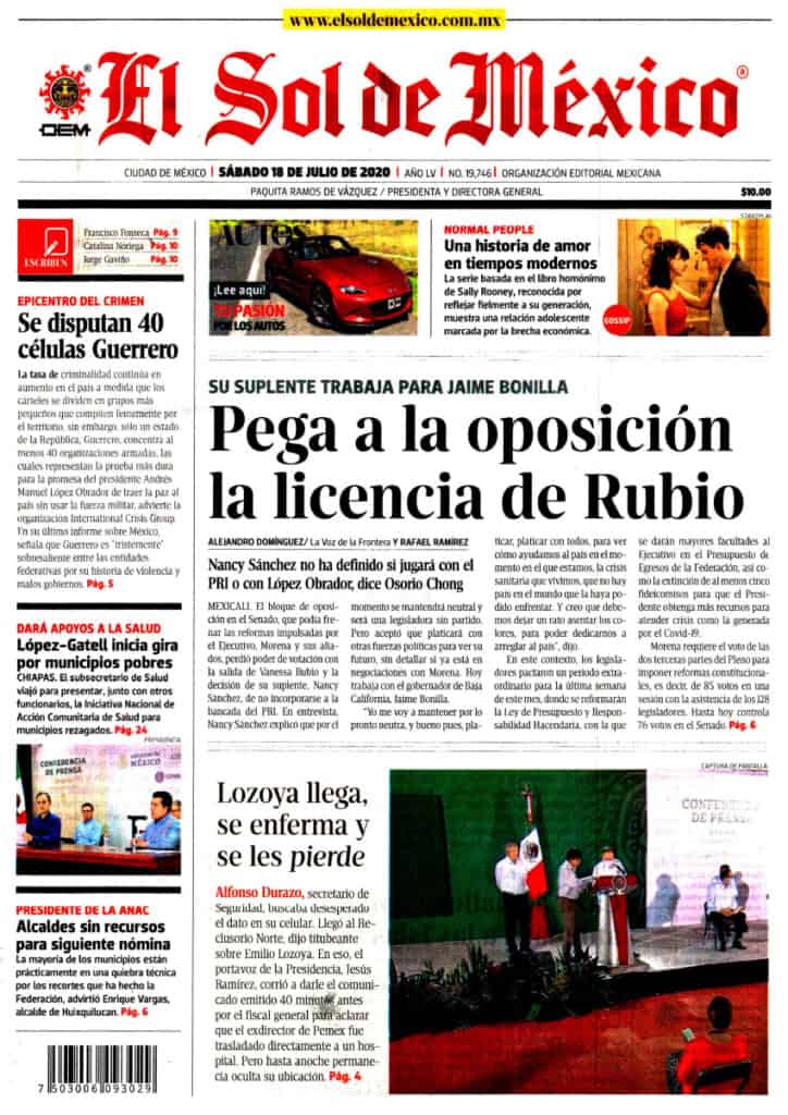 Portadas y Columnas políticas de hoyPrimeras planas nacionales 18 de julio 2020 18 julio, 20200481FacebookTwitterWhatsAppEmail