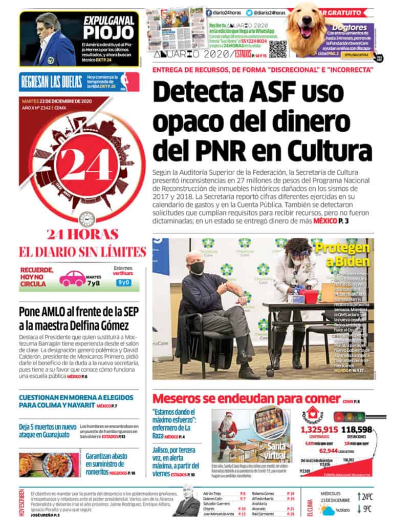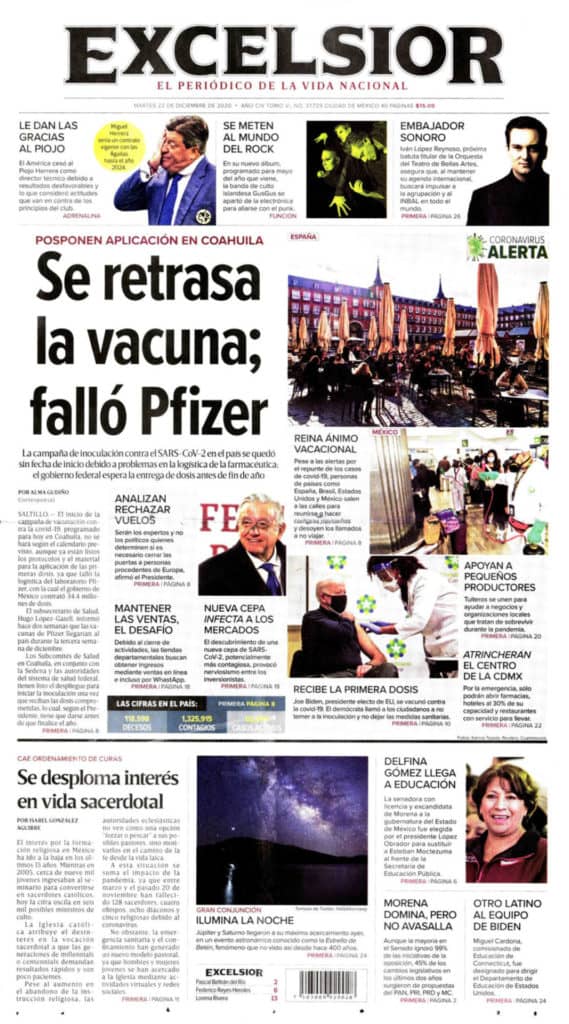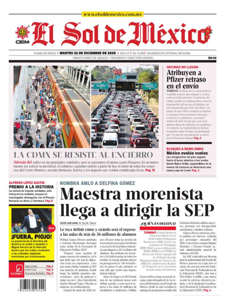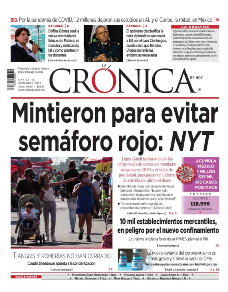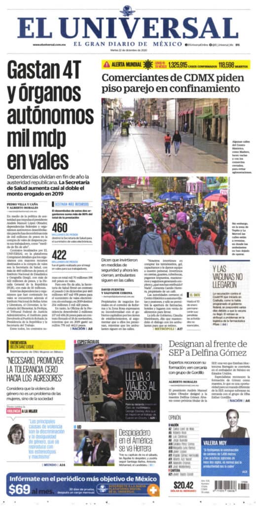 Portadas y Columnas políticas de hoyPrimeras planas nacionales / 22 de diciembre 2020 22 diciembre, 20200462FacebookTwitterWhatsAppEmail