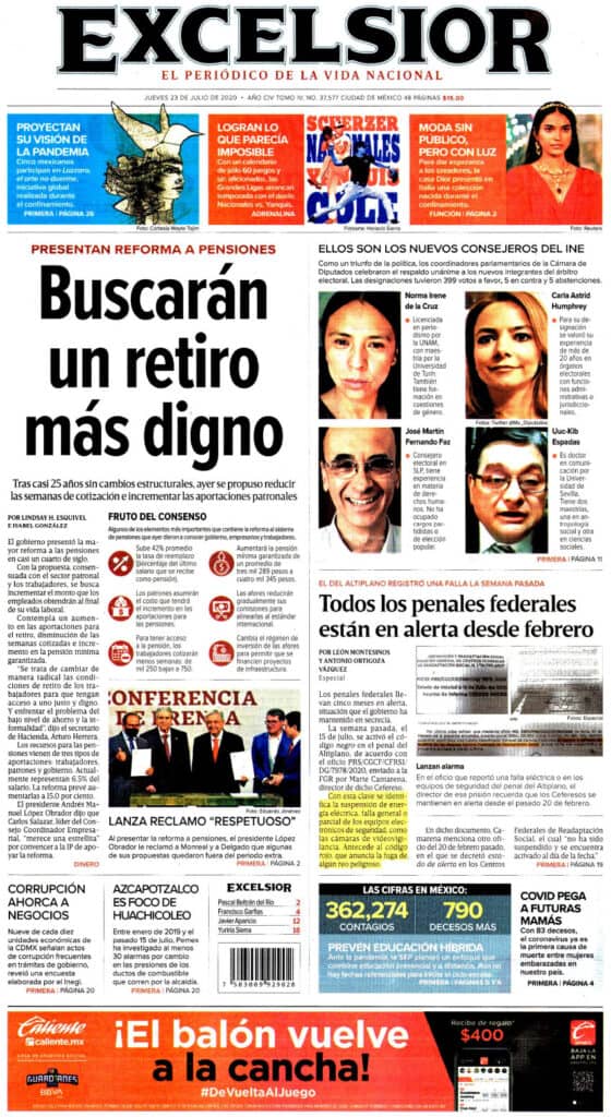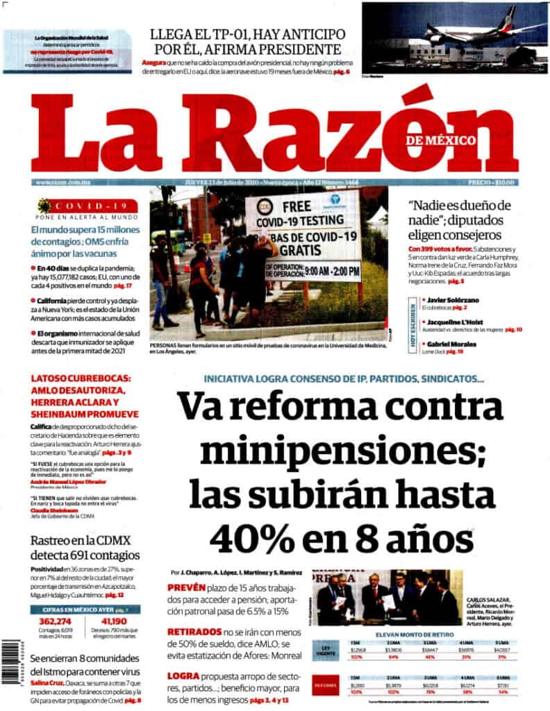 Portadas y Columnas políticas de hoyPrimeras planas nacionales / 23 de julio 2020 23 julio, 20200483FacebookTwitterWhatsAppEmail