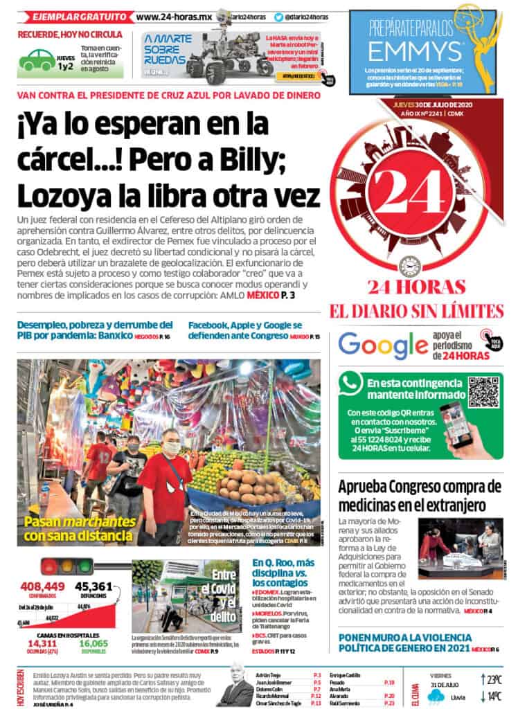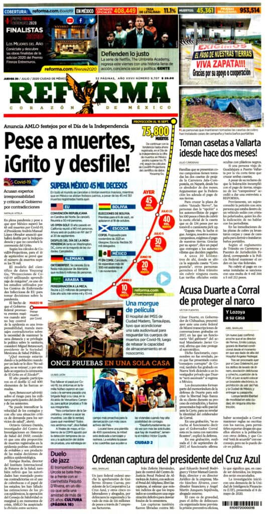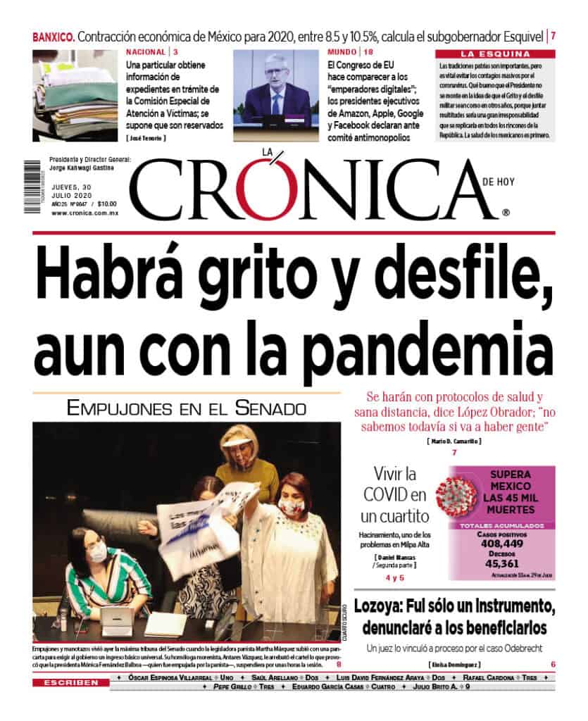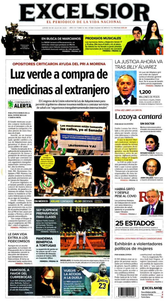 Primeras planas nacionales / 30 de julio 2020