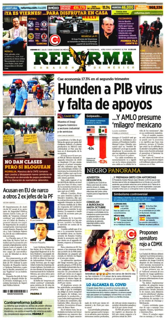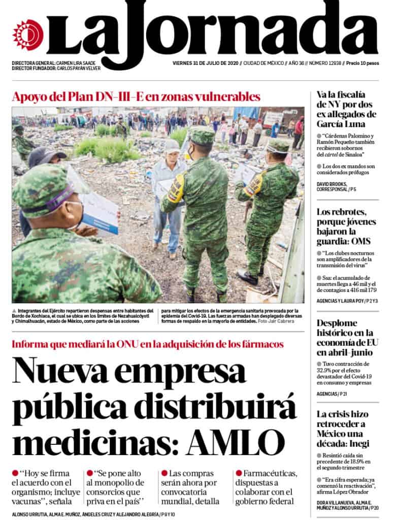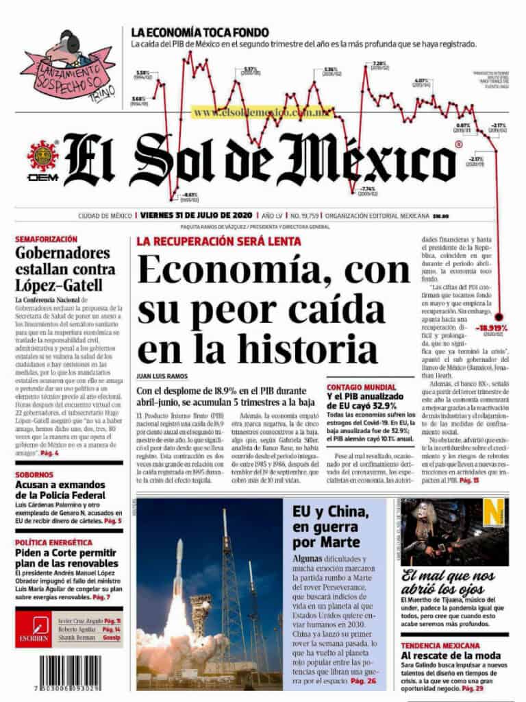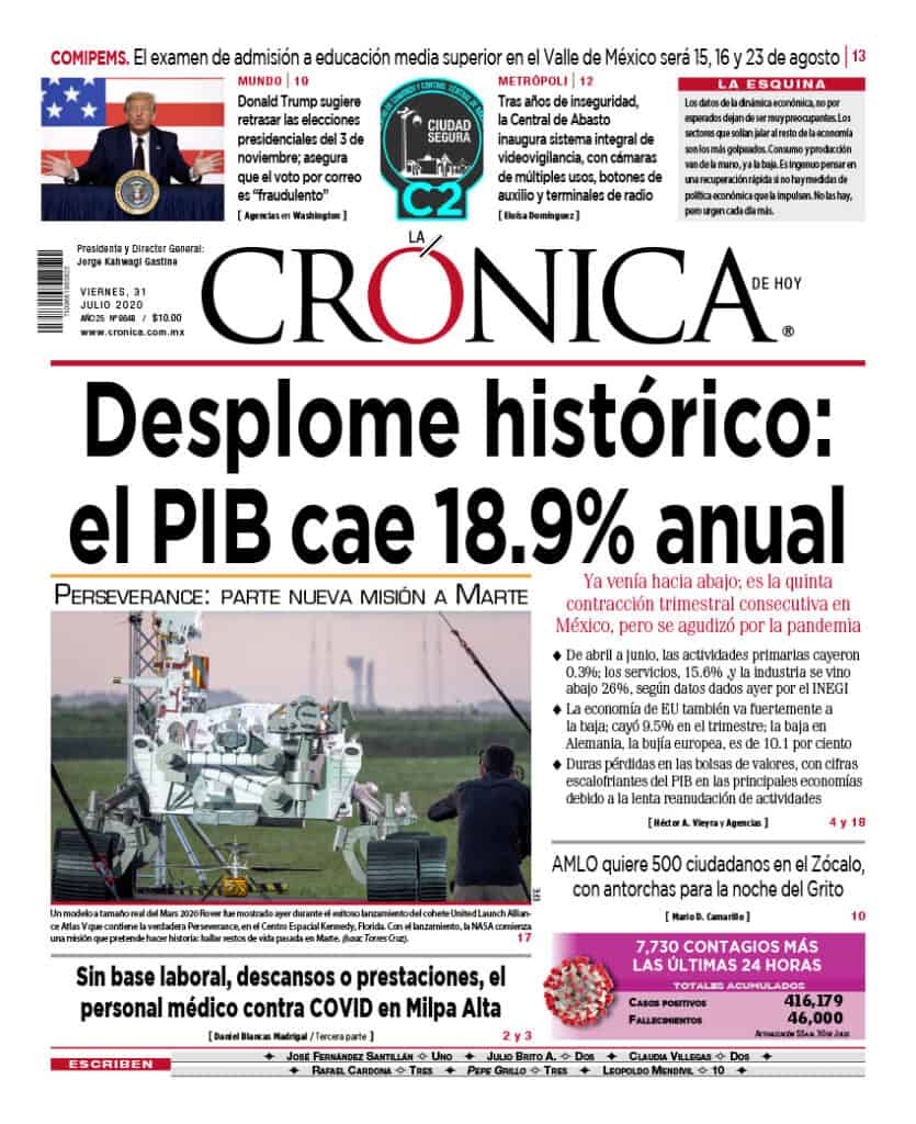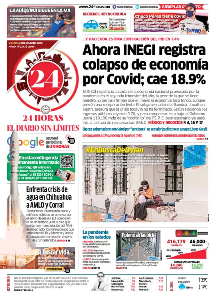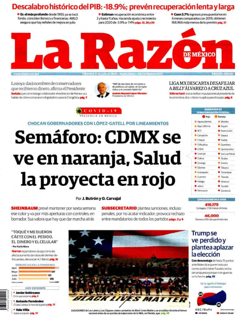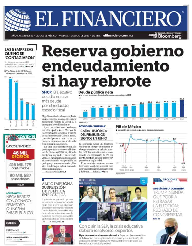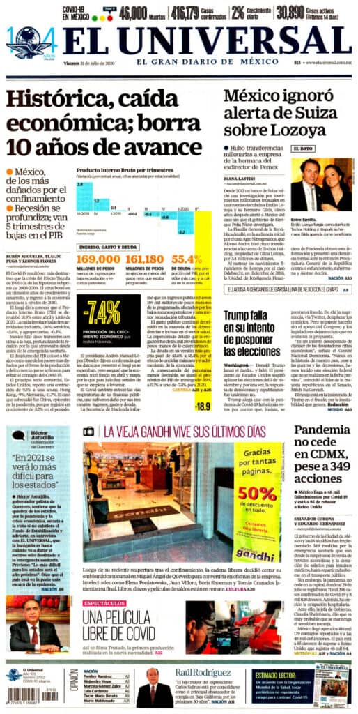 Portadas y Columnas políticas de hoyPrimeras planas nacionales / 31 de julio 2020 31 julio, 20200511FacebookTwitterWhatsAppEmail