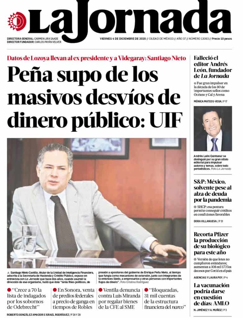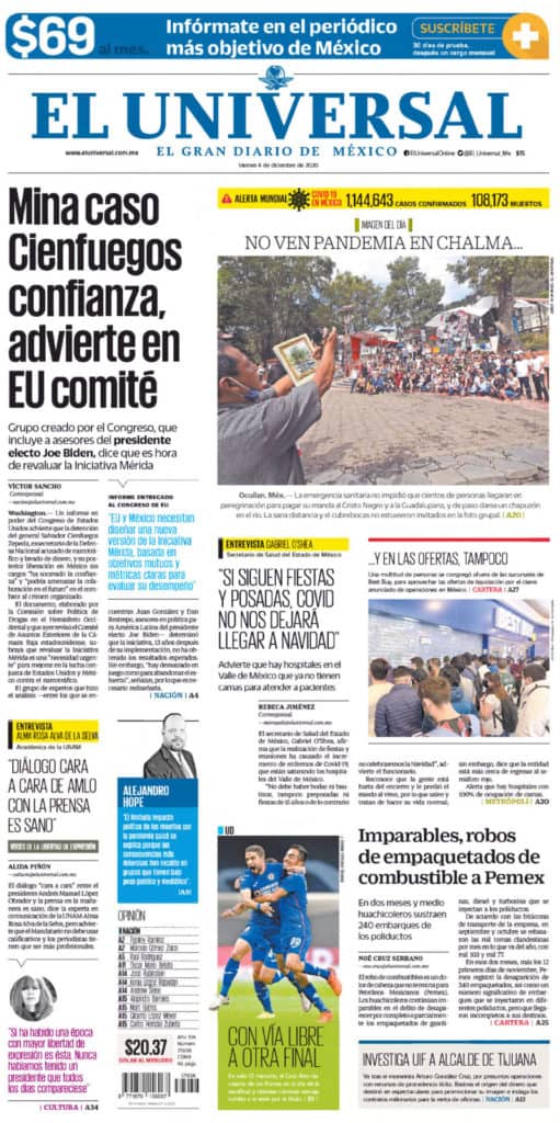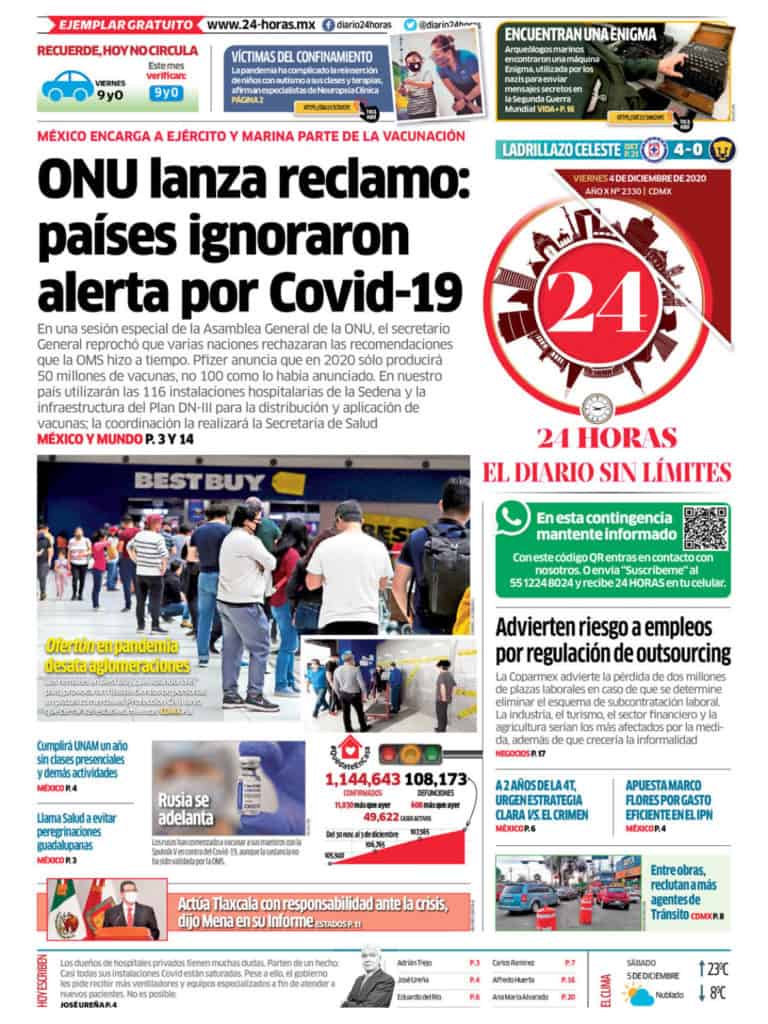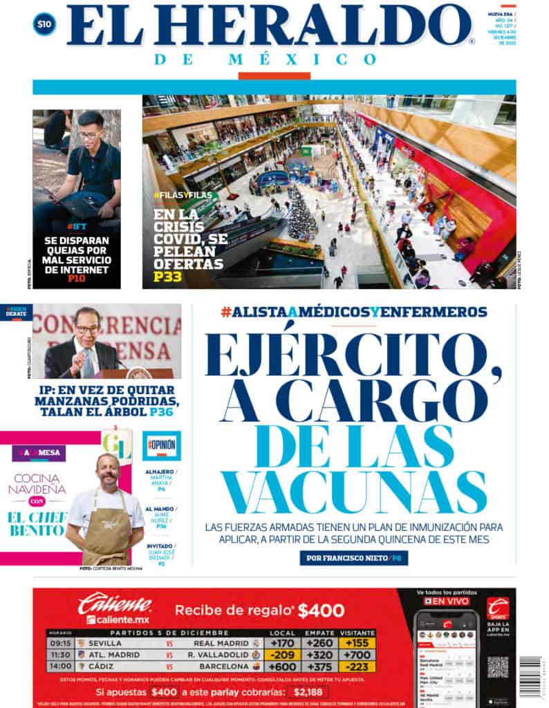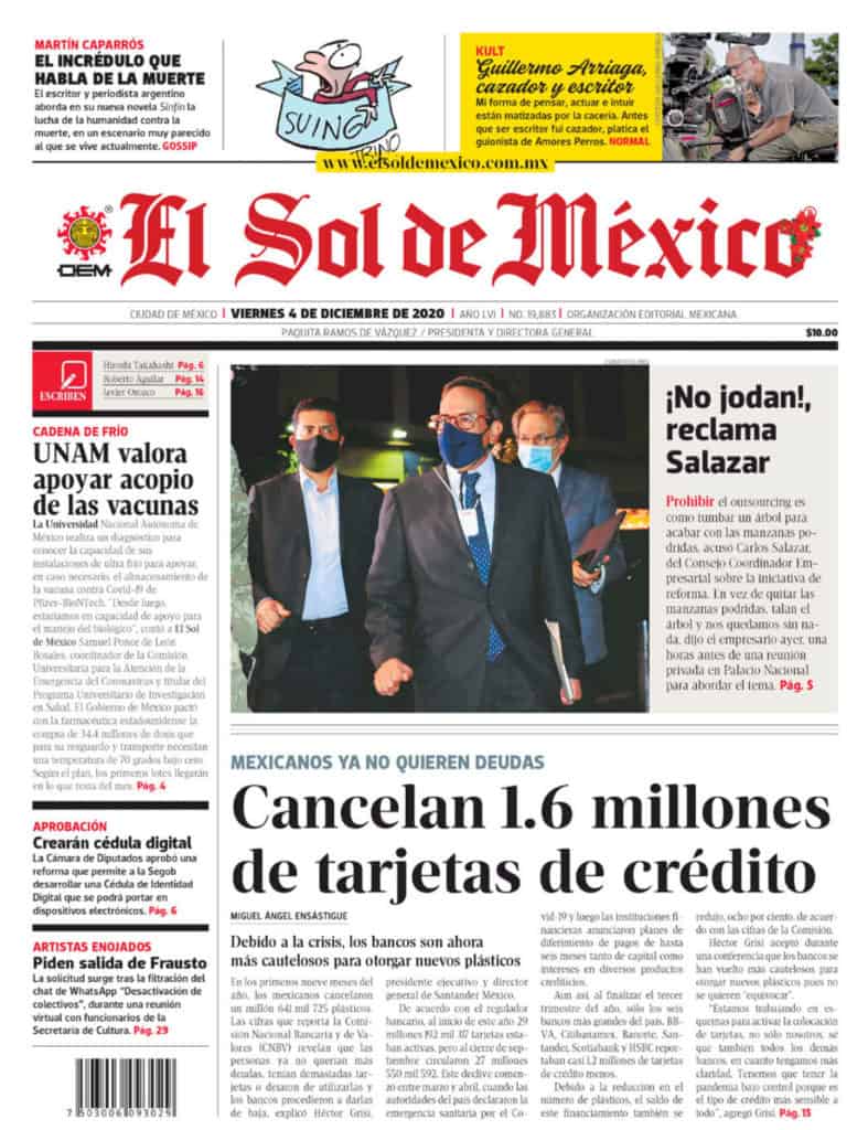 Portadas y Columnas políticas de hoyPrimeras planas nacionales / 4 de diciembre 2020 4 diciembre, 20200413FacebookTwitterWhatsAppEmail