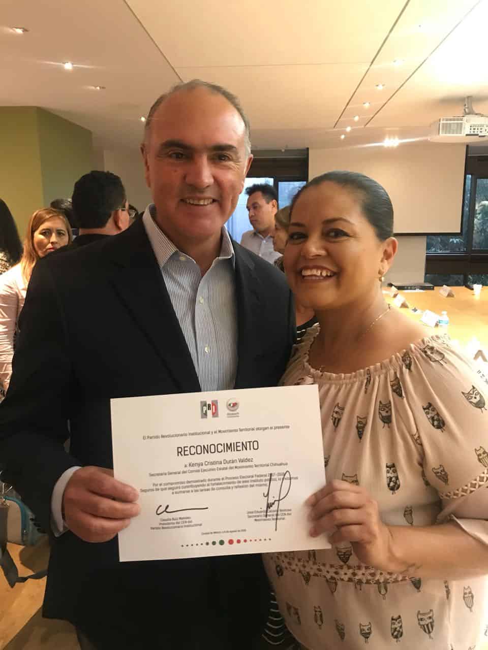 Kenya Durán, al igual que otros Dirigentes de Movimiento Territorial, recibió un reconocimiento por su destacada labor en el proceso electoral 2017-2018. Y fue convocada a sumarse a las tareas de reflexión y consulta emprendidas por el PRI, con miras a obtener un mejor posicionamiento en las próximas campañas electorales.