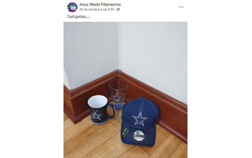 Mal gusto y colmo, la gorra y el tarro de cerveza en el rincón de su oficina en Palacio de Gobierno por parte del coordinador de gabinete de la administración estatal, Jesús Mesta. “Castigados”, le puso infantilmente.