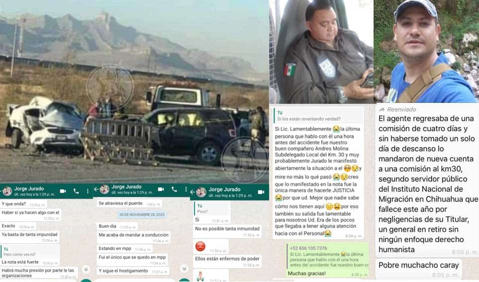 Bajo esas condiciones es que Jurado habría fallecido. “El agente regresaba de una comisión seguida de cuatro días; y sin haberse tomado un solo día de descanso, lo mandaron de nuevo al kilómetro 30. No había dormido y apenas llegó lo regresaron a trabajar”, revela uno de sus compañeros en un chat de agentes de Migración.