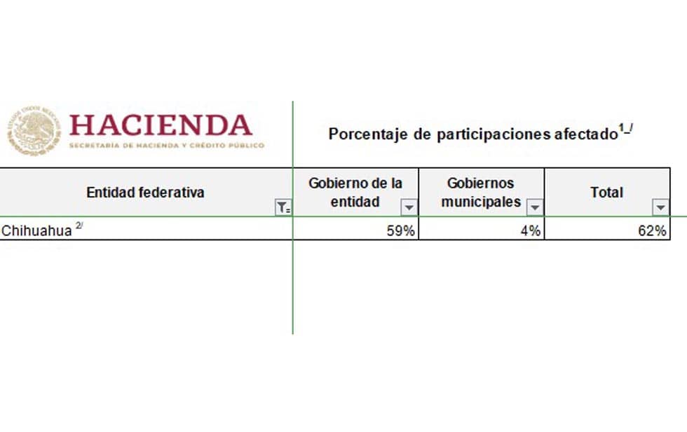 Del informe de deuda publicado por la Secretaría de Hacienda Federal con motivo del primer trimestre a la fecha, se ha incrementado sustancialmente la afectación de participaciones como garantía por parte del Estado de Chihuahua.